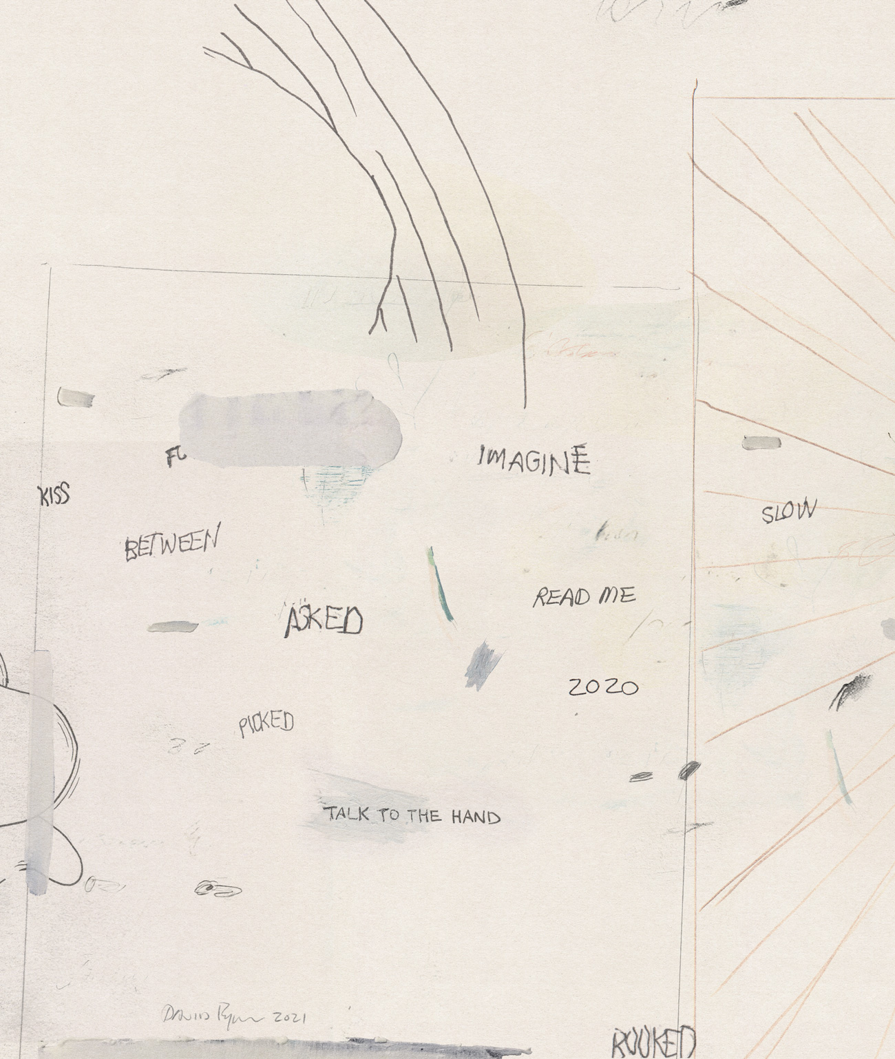 We deconstructed David Byrne’s drawings by breaking down the components of his style: ballpoint lines, ink, sketch marks, erasures, and irregular strokes. These elements were used to train a ML model capable of extending his style into new themes.